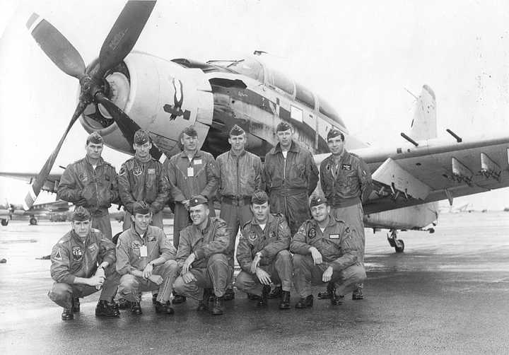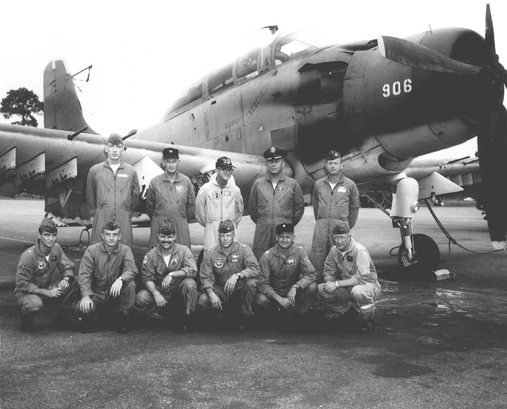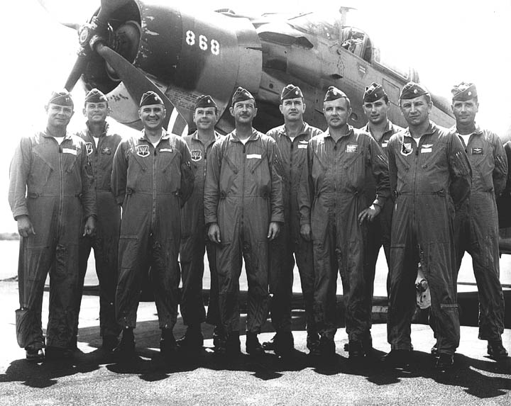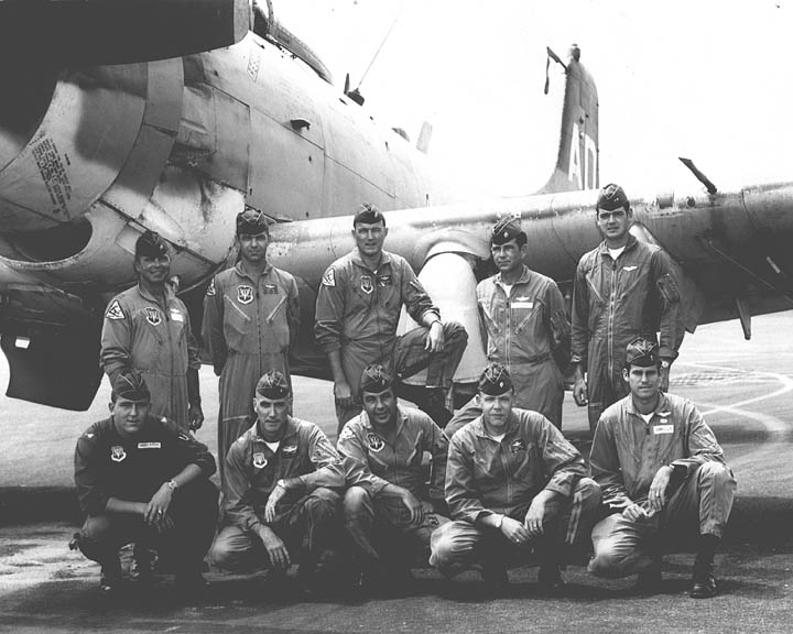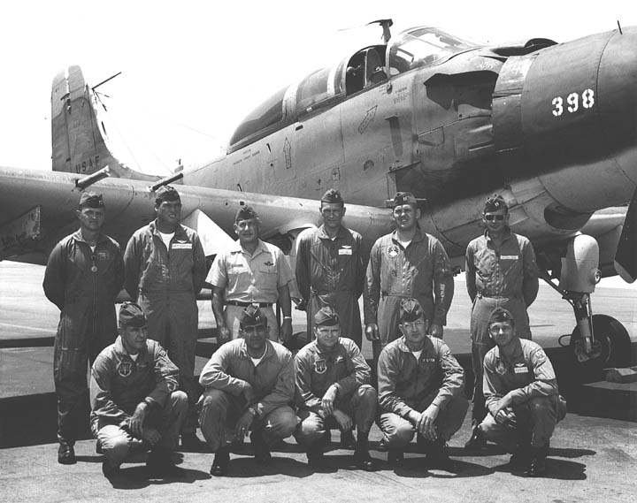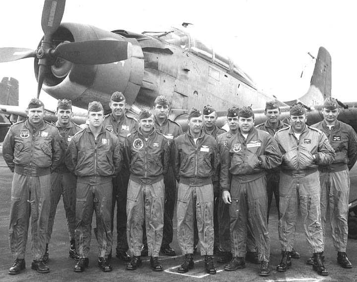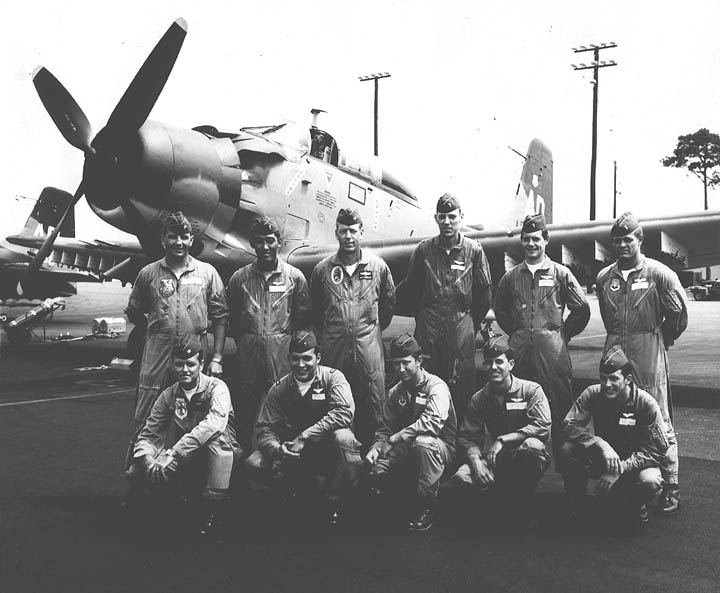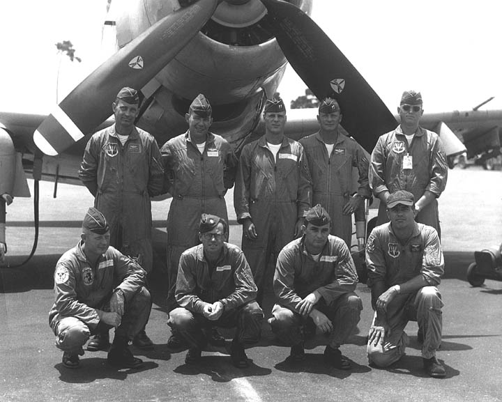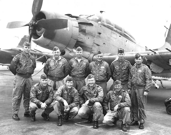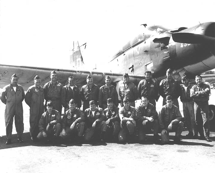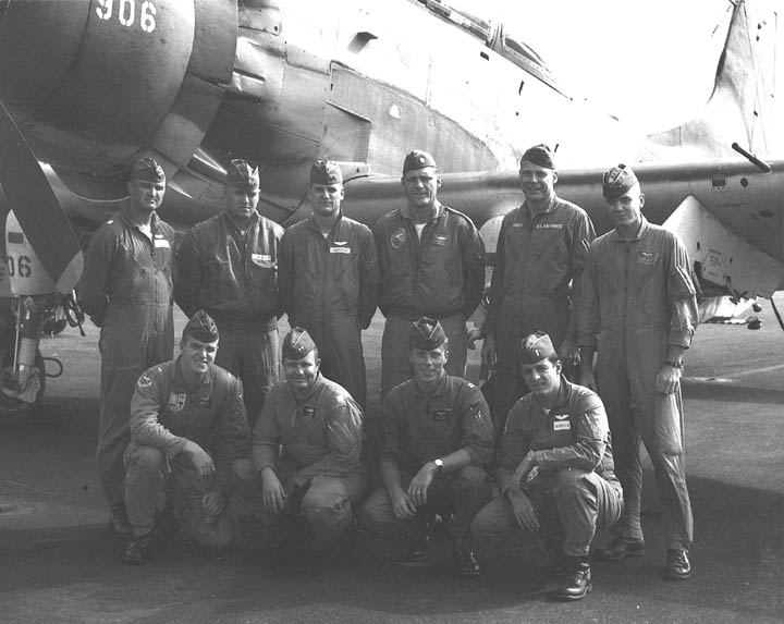 Back row: Capt Thomas Hubert Wolfe (MIA in A-26, 66/06/28) , Capt CB 'Ben' Skelton, Capt RP Rosecrans, Capt Jimmie R Crane (1993/06), Capt H. Lewis 'Lew' Smith, Capt Richard C 'Dick' Needham, Capt Glenn G. Givens (1983/07/11) Front row: Capt JT McDaniels, Capt Alan P. Weber, Capt James V. Loven, Capt Bill Spillane, Capt Leo S. Boston (KIA 66/04/29) NP/I: LtCol Richard H. 'Dick' Erickson, LtCol WC Thomas, Maj JL Johnson |