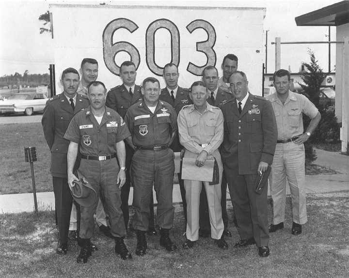 Back row: Capt Doyle C. Ruff, Capt Alfred M. 'Alf' Miller (2008/09/01), Capt Phillip M. 'Phil' Horn, Capt William L. Richardson (KIA 66/04/02), Capt Thomas C. "Tommy" McEwen Jr. (KIA 65/02/24) Front row: Capt Richard G. 'RG' Head, Capt Robert F. Sveska, Maj Louis H. Dillon, Maj Louis C. 'Lou' Gang, Capt Dwight D. Hartzell |