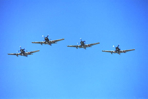 A Skyraider fourship overhead