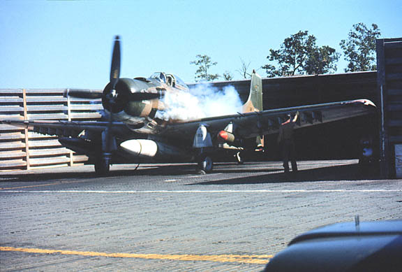 A Skyraider at engine start up accompanied by the