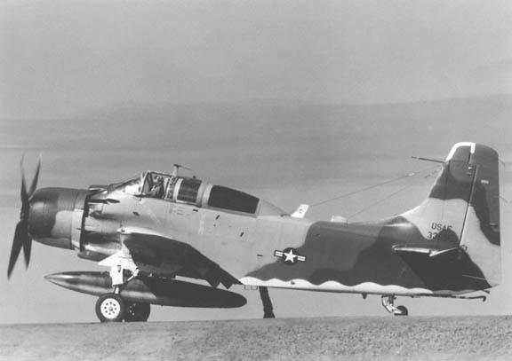 An A-1H from the 1st SOS maneuvers with the canpy open