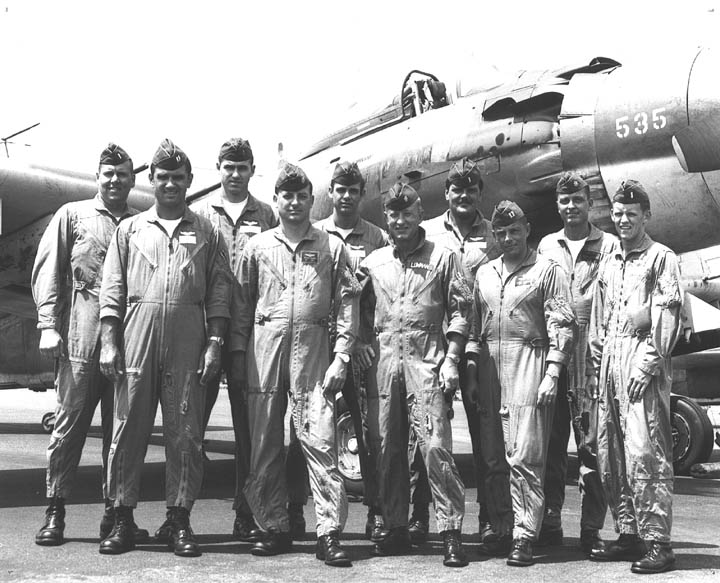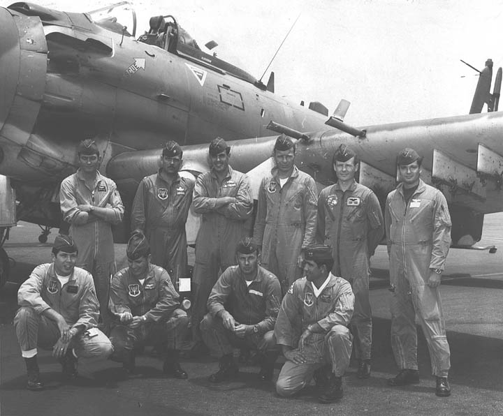 Back row: Capt John "Jack" Wolcott (2011/08/07), Lt Jan Reeves, Capt Mike Singer, Lt Art Miller, Lt Jim Maxam, Lt Chuck Kasbeer Front row: Maj Larry Jakus, LtCol Hicks, Lt Fred Kishler (deceased), Lt Don Feld, Lt Jim 'Pig' Paine |