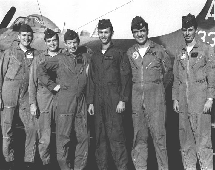 Back row: Capt Delmar 'Shelly' Hilliard (2012/05/07) Front row: Capt William C. Gawler, Capt J.W. McLendon, Jr., Capt Kenneth E. Walker (KIA 64/10/02), 1Lt D.C. Gildart, Capt James T. Harwood, Capt R.D. Hohlstein |