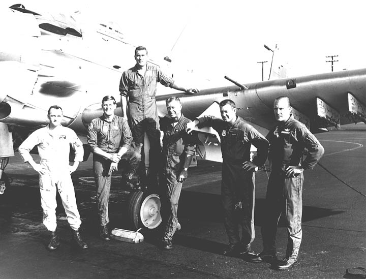 Back row: Lt Col Vanhorn, Capt Richard B. 'Dick' Kent III (2004/04/22), Maj Albro L. 'Al' Lundy Jr. (KIA 70/12/24), Maj Allen, Lt William 'Bill' Rock Front row: Lt Wilson, Capt Robert 'Bob' Senko, Lt Wade Tillery, Capt Edwin Gullion (2022/07/22) , Maj Willard R. Van Dusen Jr. (1979/05/25) |