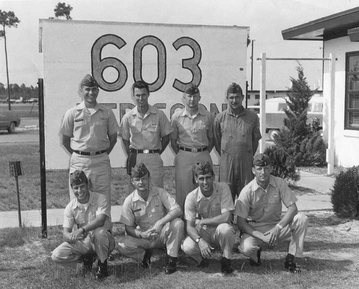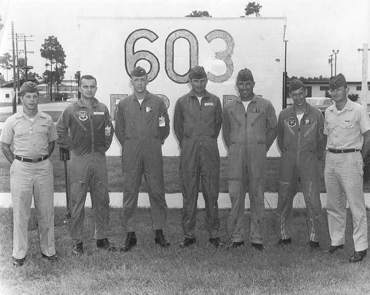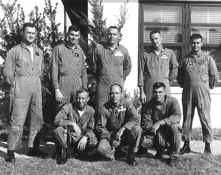 Back row: Capt Doyle C. Ruff, Capt Alfred M. 'Alf' Miller (2008/09/01), Capt Phillip M. 'Phil' Horn, Capt William L. Richardson (KIA 66/04/02), Capt Thomas C. "Tommy" McEwen Jr. (KIA 65/02/24) Front row: Capt Richard G. 'RG' Head, Capt Robert F. Sveska, Maj Louis H. Dillon, Maj Louis C. 'Lou' Gang, Capt Dwight D. Hartzell |