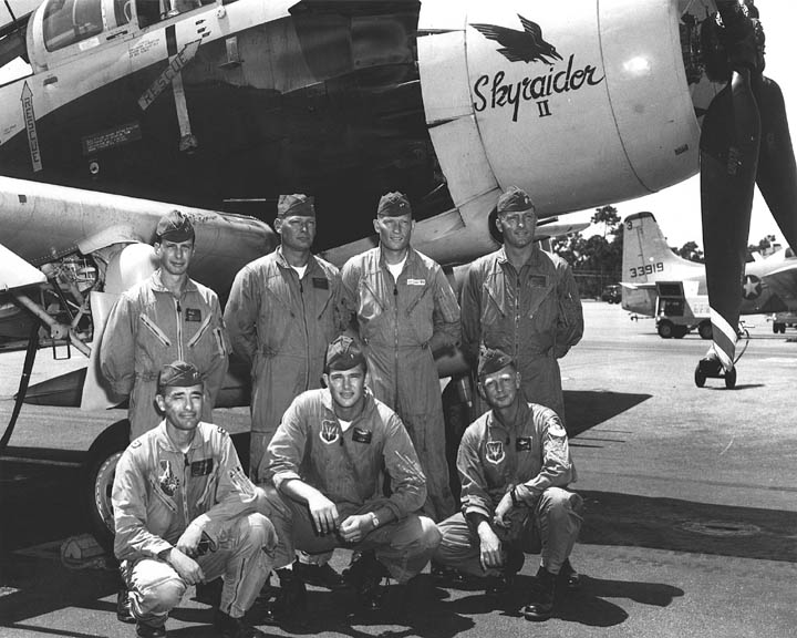 Back row: Capt Kennetn H McArn, Capt Richard A. 'Ish' Ingram, Capt SP Knickerbocker, Capt Donald C. Patch (KIA 65/10/02), Capt Kenneth B Ruhm Front row: Maj Bernard F. Fisher (2014/08/16), Maj Fred L. McPherson (KIA 66/01/28), Capt John S. Stewart (1976/05/06), Capt George G. McKnight (POW '65-'73) |