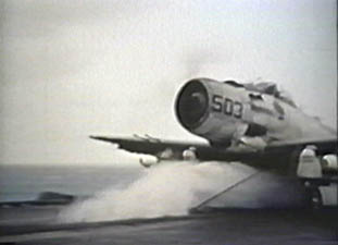 I switched my radio to Gray Eagle Approach. "This is Skyraider 04," I said. "Up and ready." By this time the jets had been launched and the four of us taxied forward. I revved up my engine on number three catapult, checked the gauges, put on full power, and saluted. With a jolt the catapult slung me off the carrier toward North Vietnam.