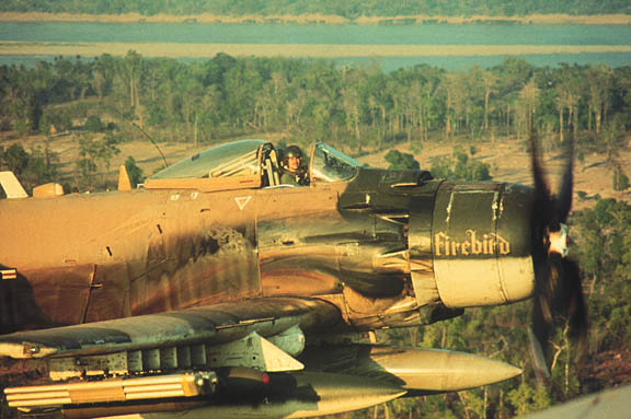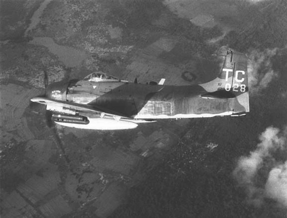 An A-1H from the 1st SOS maneuvers with the canpy open