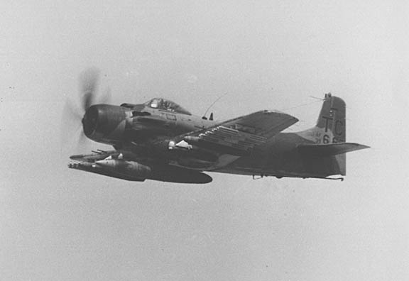 What: Side view of an A1E coming from a mission in support of Project Muscle Shoals.